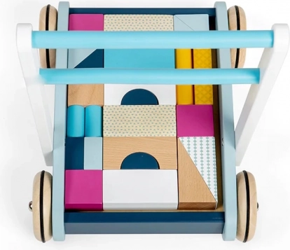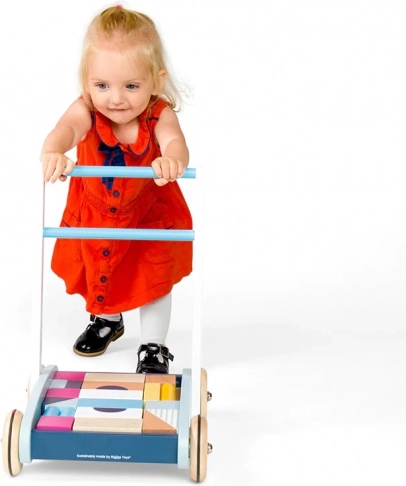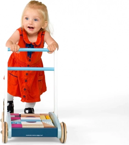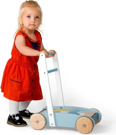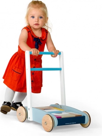 Die robuste Holzkonstruktion, der gut greifbare Griff und Räder mit guter Traktion helfen Kindern, sicher und selbstbewusst zu laufen.