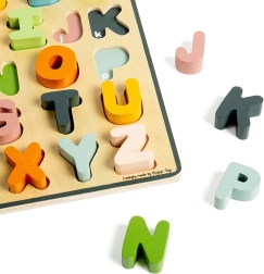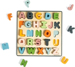 Das Holzpuzzle mit 26 farbenfrohen Buchstaben ist das perfekte Hilfsmittel für den ersten Einstieg ins Alphabet. Jeder Buchstabe hat eine Aussparung in der passenden Farbe, was Kindern das Merken und das korrekte Zuordnen erleichtert. Dank der stabilen, leicht greifbaren Teile trainieren Kinder die Augen-Hand-Koordination und Konzentration.