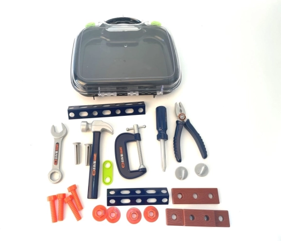 Ideales Geschenkset für kleine Handwerker! Enthält verschiedene Kunststoff-Werkzeuge wie Hammer, Schraubendreher und Schlüssel, die es den Kindern ermöglichen, spielerisch die Welt der Reparaturen und des Bauens zu entdecken.