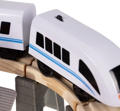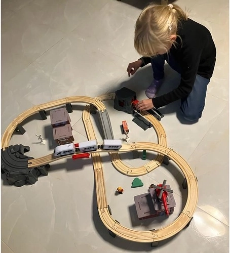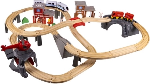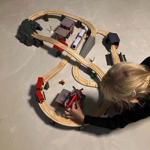 Holzeisenbahn 3,2 m – großes Set mit 57 Teilen und Kran