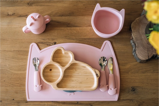 Die Schüssel hat die Form eines Katzenkopfes mit einfachen Details, die jede Mahlzeit bereichern.