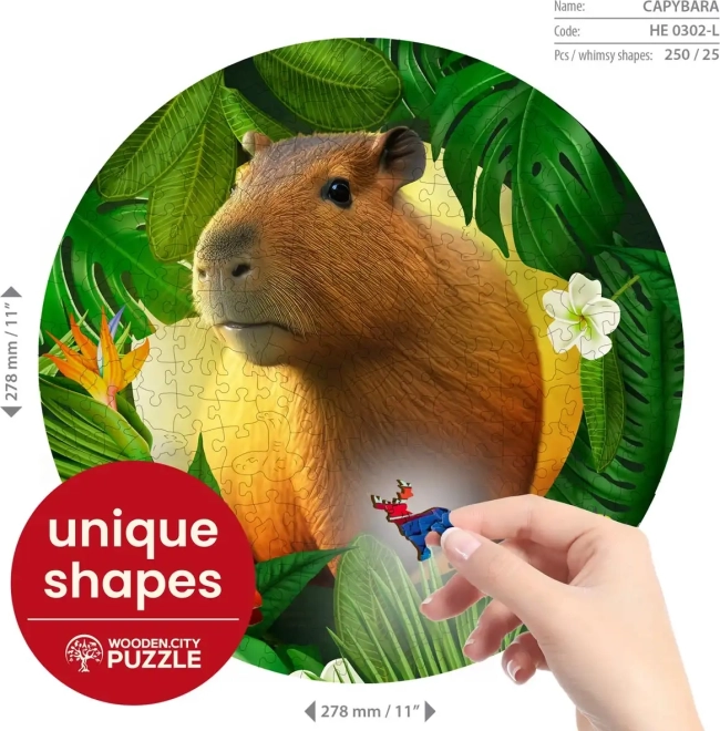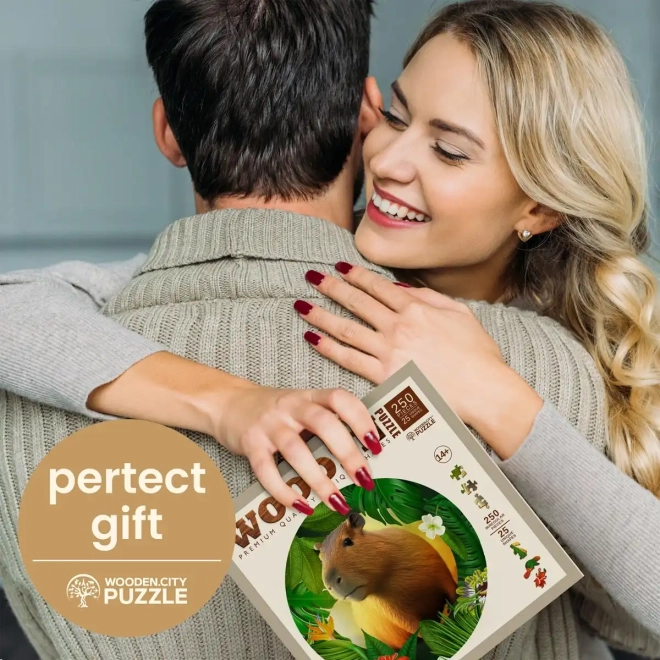 Das Holzpuzzle WOODEN CITY mit Capybara-Motiv bietet ein einzigartiges Puzzle-Erlebnis. Speziell geformte Teile, von denen einige Tierformen haben, begeistern jeden Liebhaber origineller Puzzles. Durch Laser hervorgehobene Details verleihen dem Bild Tiefe und die einzelnen Formteile können auch allein als kleine Figuren stehen.