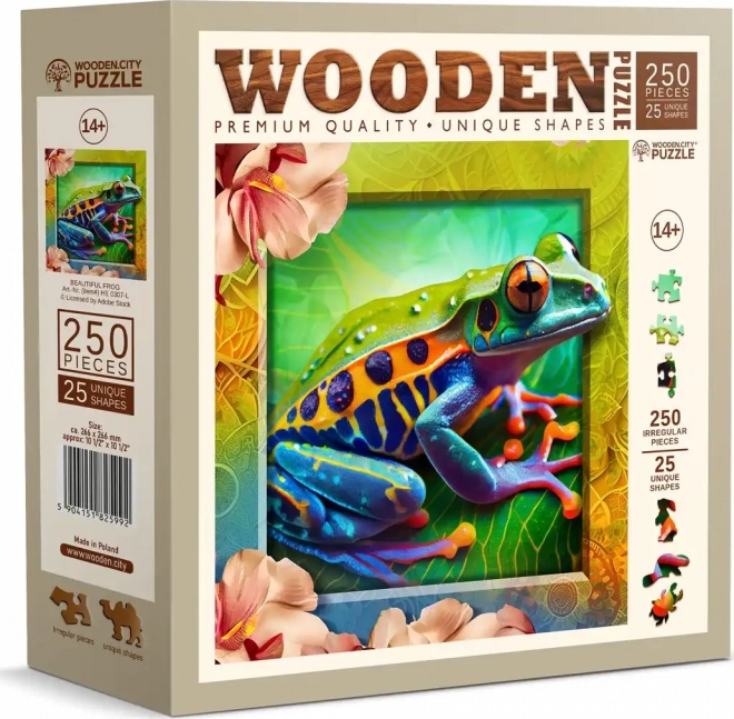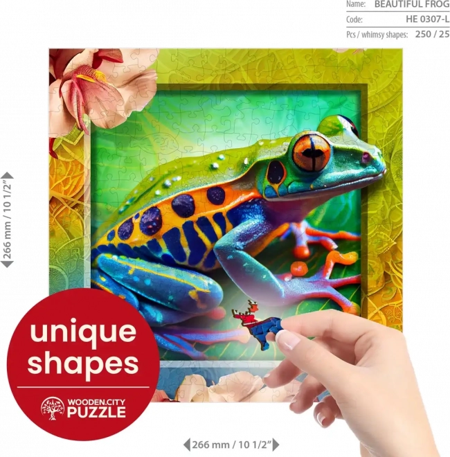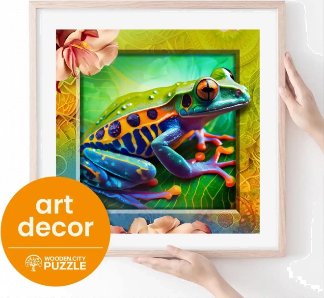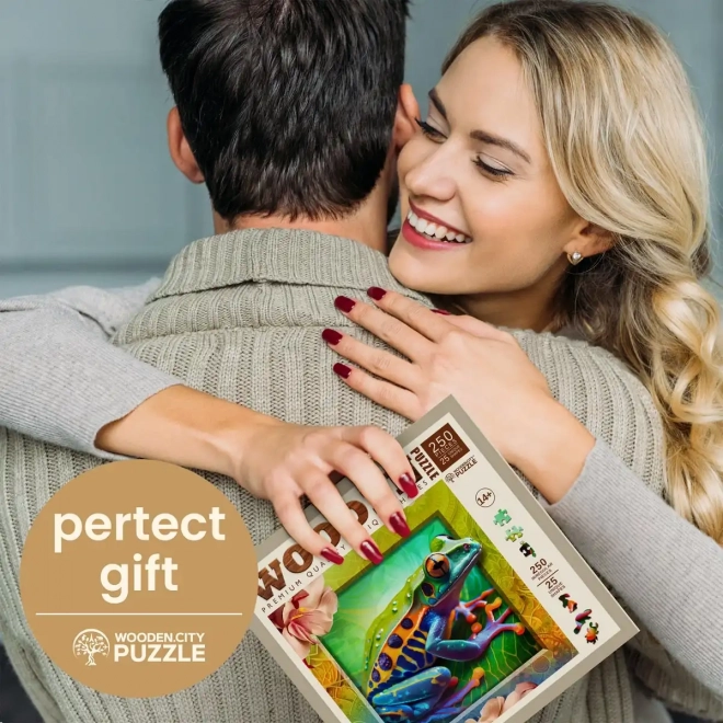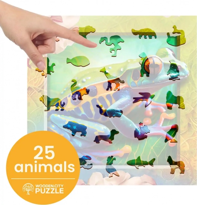 Entdecken Sie eine fesselnde Art, Puzzles zusammenzusetzen mit dem WOODEN CITY Holz-Puzzle Bunter Frosch. Die Teile sind präzise mit dem Laser geschnitten, um einzigartige Tiersilhouetten zu schaffen, die als eigenständige Mini-Figuren dienen können.