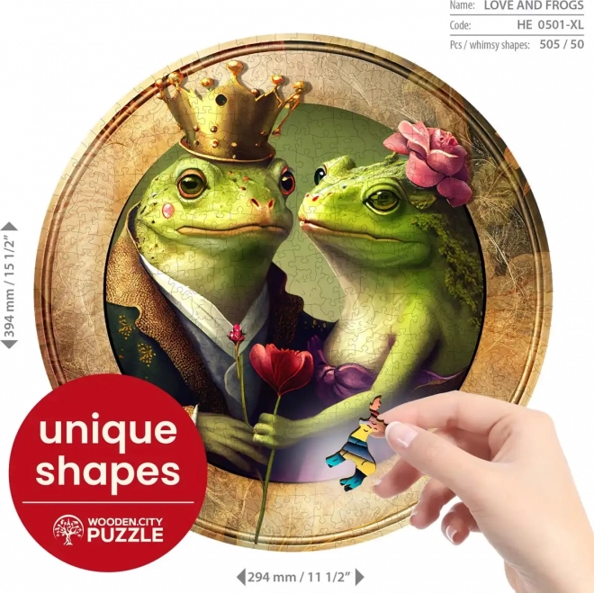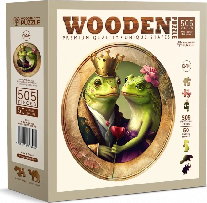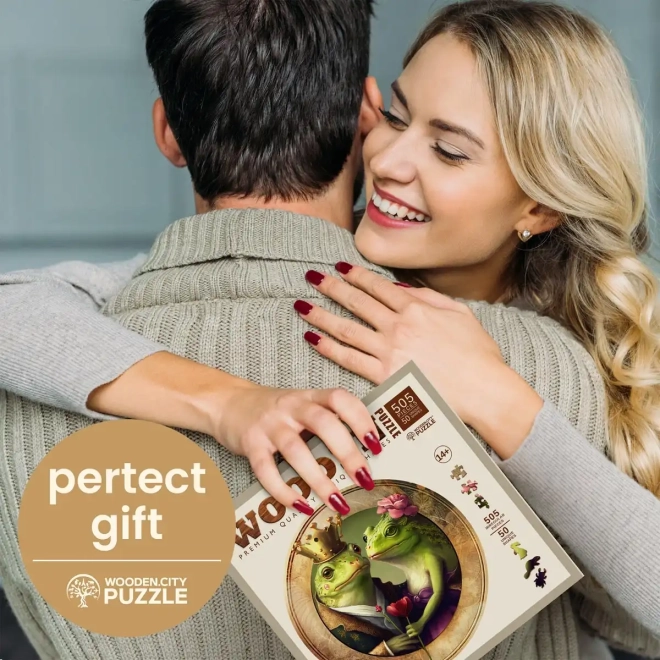 Holzpuzzle Liebe und Frösche von WOODEN CITY ist ein einzigartiges Bauset mit lasergefertigten Teilen. Dieses Set bietet ein hoch unterhaltsames Puzzlerlebnis mit Teilen in Form von Tieren, die als kleine Figuren stehen können.