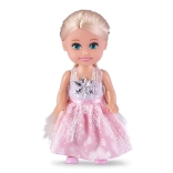 Jede Puppe trägt ein märchenhaftes Kleid mit Schneemotiven, das die Fantasie der Kinder beflügelt und dem Spiel eine zauberhafte Atmosphäre verleiht.