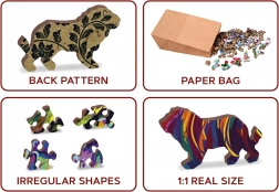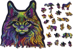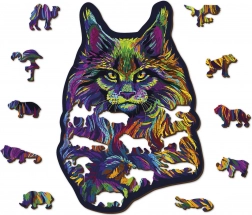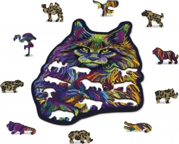 Entdecken Sie das faszinierende Holzpuzzle Regenbogen Wilde Katze von Wooden City, das mit seinen einzigartig geformten Teilen stundenlangen Spaß bietet. Die kunstvoll gelaserten Teile sind nicht nur herausfordernd, sondern auch künstlerisch ansprechend, besonders die tierförmigen Stücke, die für sich alleine stehen können.