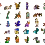 - mit einzigartig geformten Teilen, die je nach Motiv bekannte Bauwerke, Gegenstände oder Tiere darstellen