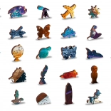 - mit einzigartig geformten Teilen, die je nach Motiv bekannte Bauwerke, Gegenstände oder Tiere darstellen