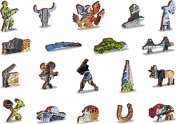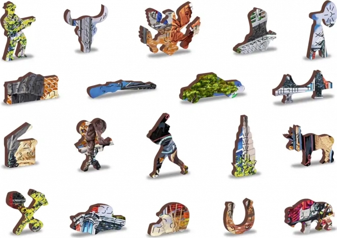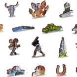 Ein Teil der Puzzleteile hat die Formen von Tieren, Gebäuden und Gegenständen. Präzise Laserarbeit betont die Details und sorgt für glatte, sichere Kanten.