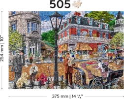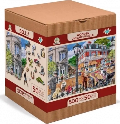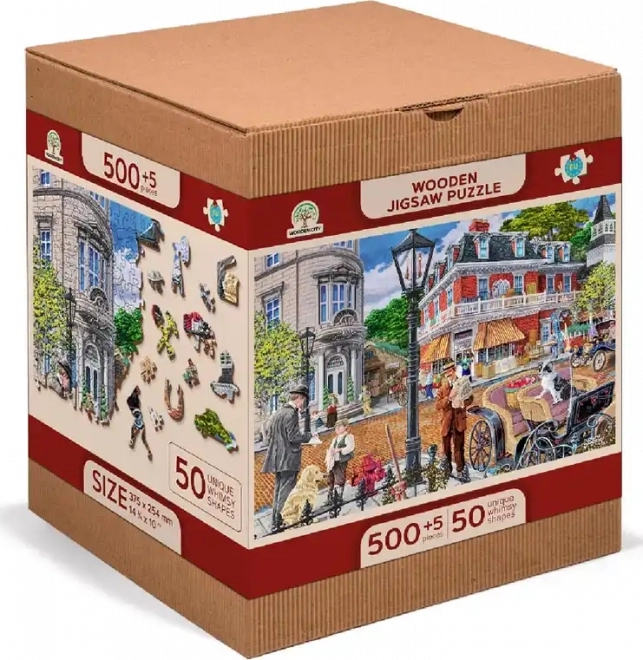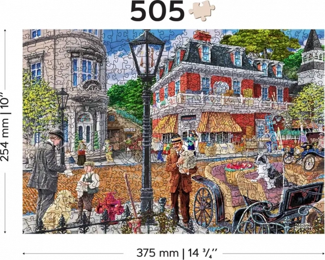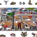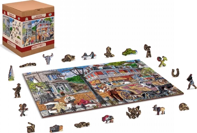 Genießen Sie fesselnden Puzzlespaß mit dem Holzpuzzle WOODEN CITY, das eine farbenfrohe Szene einer pulsierenden historischen Straße zeigt. Speziell geformte Teile mit feinen Laser-Details erhöhen den Spielspaß und die Ästhetik – einige Teile in Tier- oder Objektform lassen sich als kleine Figuren aufstellen.