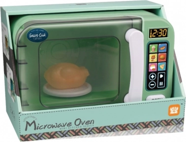 Die grüne Mikrowelle ist mit Ton- und Lichteffekten ausgestattet, die ein realistisches Kocherlebnis bieten. Batterien sind im Lieferumfang enthalten.