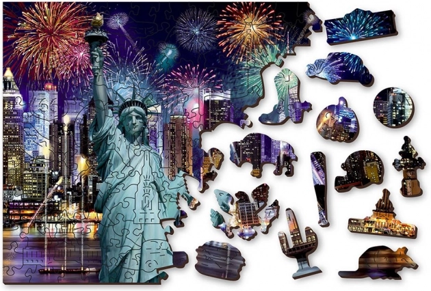 Das Holzpuzzle "New York bei Nacht" bietet ein unvergessliches Puzzle-Erlebnis für alle Puzzle-Liebhaber. Jedes der 200 Teile ist mit einem Laser aus hochwertigem Holz präzise geschnitten, was Haltbarkeit und Präzision gewährleistet. Die Vorderseite der Teile ist mit detaillierten Bildern verziert, während die Rückseite für ein höheres ästhetisches Erlebnis ein Tapetenmuster trägt.