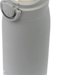Die Flasche ist mit einem bequemen Druckknopf-Öffnungsmechanismus und einem Ausguss für einfaches Trinken ausgestattet.