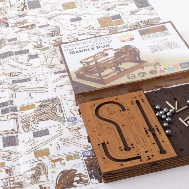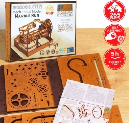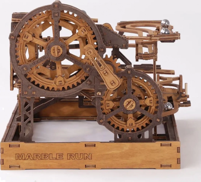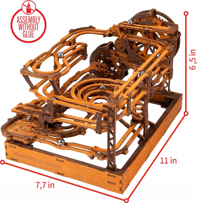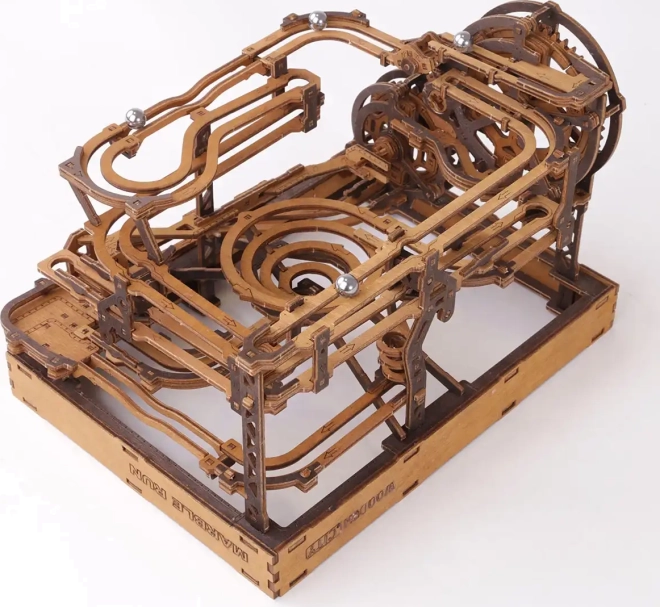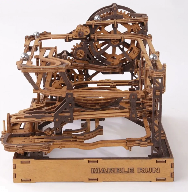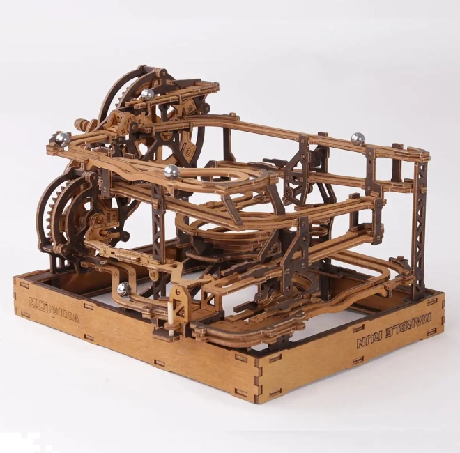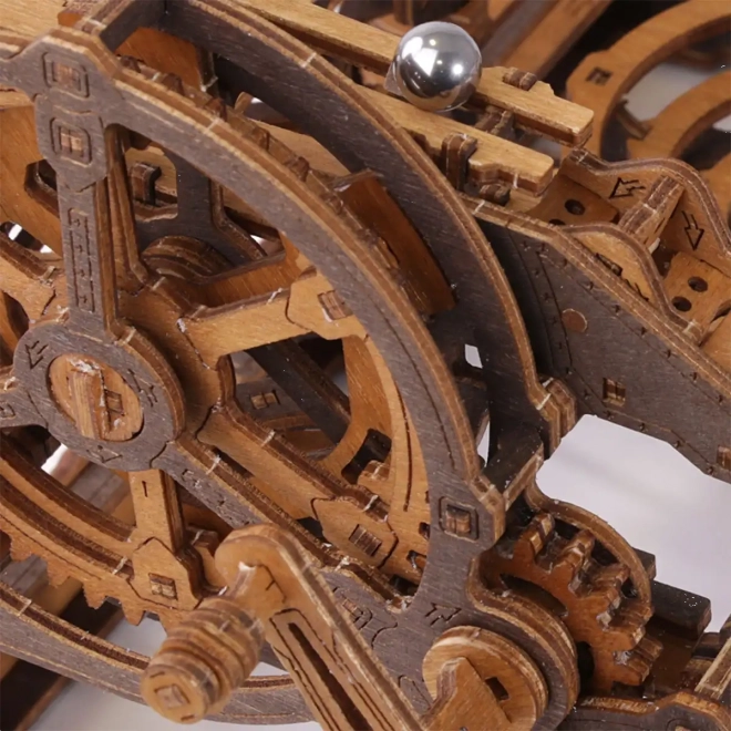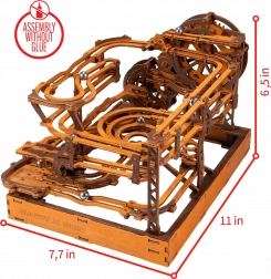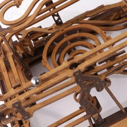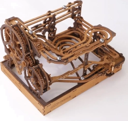 Dieses 3D Holz Puzzle verziert nicht nur das Interieur, sondern bietet auch Stunden von Unterhaltung und Herausforderung. Hergestellt aus ökologischem Birken-Sperrholz mit hoher Dichte, erfordert dieses Modell Überlegung und Geschick beim Bau. Das Design simuliert einen funktionellen Mechanismus, bei dem Metallkugeln durch ausgeklügelte Bahnen laufen.