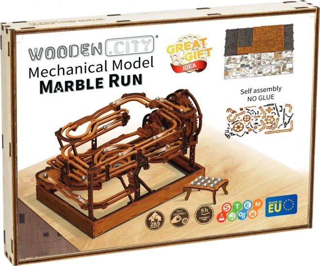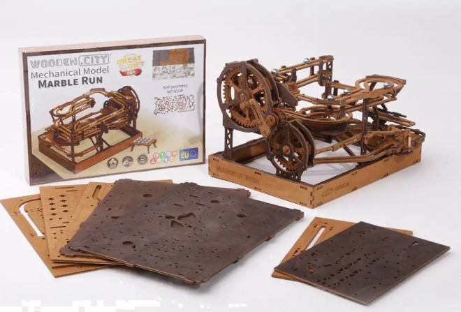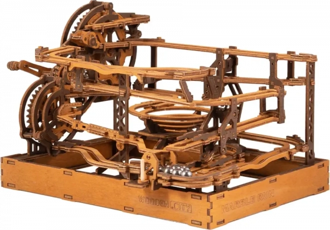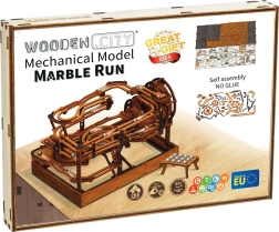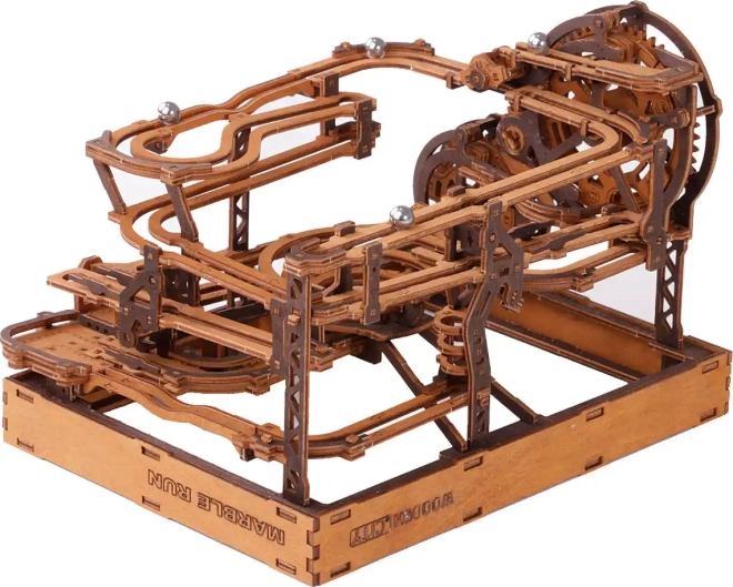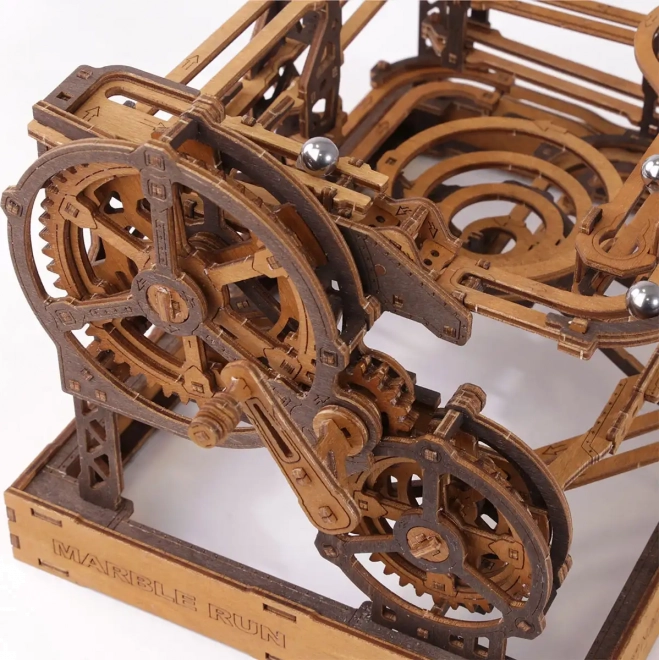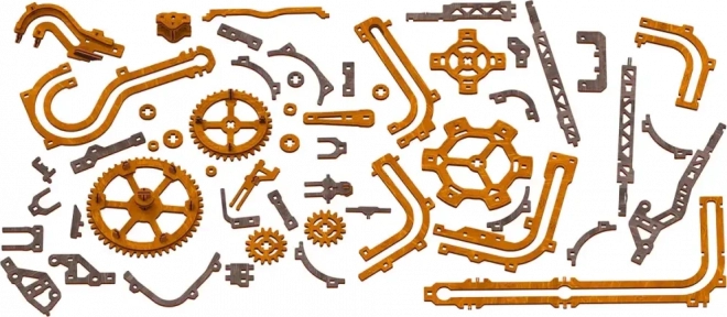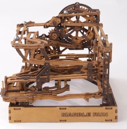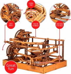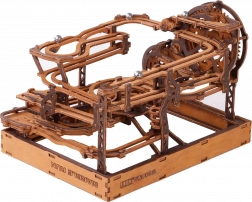 Schlüsselfunktionen sind scharfe Kurven, spiralförmige Abfahrten und Hebevorrichtungen. Ohne Verwendung von Klebstoff oder Werkzeug genießen Sie ein Puzzlespiel, das eines Ingenieurs würdig ist. Beim Aufbau lernen Sie über Zahnräder, Gummimotoren und Zahnräder.