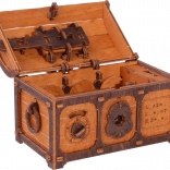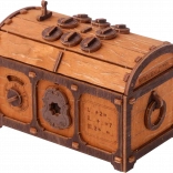 Die Truhe ist sorgfältig aus natürlichem Holzwerkstoff gefertigt, ohne die Notwendigkeit von Kleber oder Werkzeugen. Beim Zusammenbau lernen Sie mechanische Getriebe, Gummimotoren und Zahnräder kennen. Dank der detaillierten Anleitung können Sie das Modell in etwa 3 Stunden zusammenbauen.