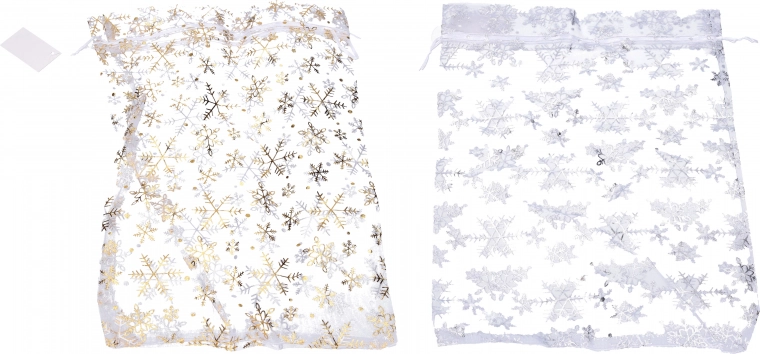 Dieser wunderschöne Organzabeutel mit Weihnachtsflocken verleiht Ihren Geschenken ein zauberhaftes Aussehen. Er ist ideal für die Weihnachtszeit, egal ob Sie Geschenke für Ihre Lieben einpacken oder ihn als Dekoration verwenden möchten.