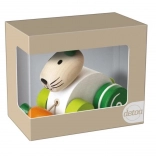 Dieses klassische Nachziehspielzeug in Form eines Hasen mit Möhre ist der ideale Begleiter bei den ersten Schritten. Es ermutigt Kinder zum Laufen, unterstützt die Hand-Auge-Koordination und bringt Freude an der Bewegung. Dank seines niedlichen Designs schließen Kinder es schnell ins Herz.