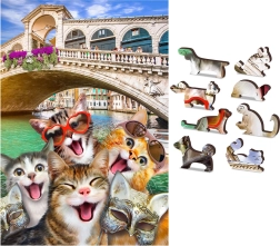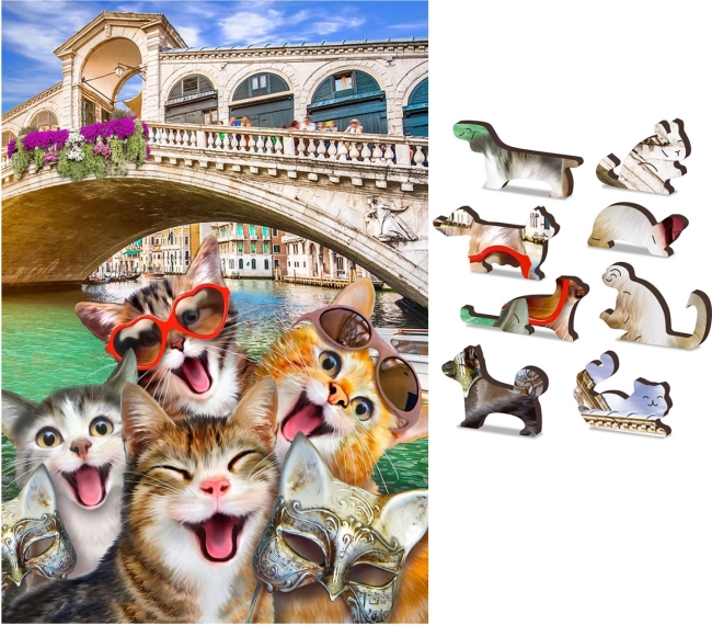 Das Holzpuzzle Kätzchen in Venedig 2v1 bringt einen innovativen Ansatz zu klassischen Puzzles durch einzigartig geformte Teile. Teile in Form bekannter Gebäude, Tiere oder Objekte geben jedem Puzzlen eine neue Dimension des Abenteuers. Zusätzlich können diese Teile dank der lasergestalteten Details als kleine Figuren verwendet werden.