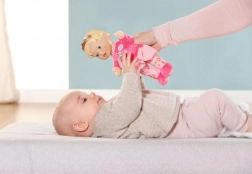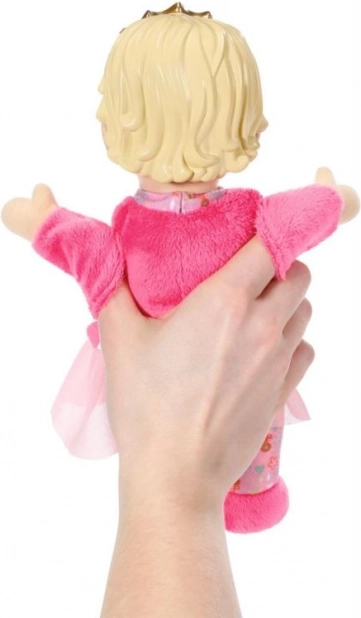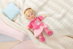 Die BABY born for babies Prinzessin ist die ideale erste Puppe für Babys und Kleinkinder. Der weiche Körper lädt zum Kuscheln ein, während der leichte Vinylkopf mit goldener Krone der Spielfigur einen königlichen Look verleiht. Integrierte Täschchen in den Händen machen die Puppe zur Handpuppe – einfach die Finger hineinstecken und Geschichten zum Leben erwecken.