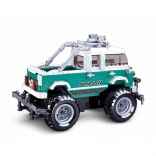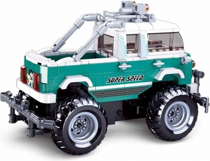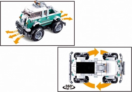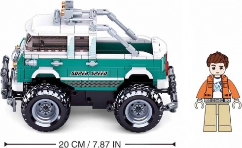 Das Modell ist für spielerisches Bauen und dynamisches Fahren konzipiert. Es bietet eine offene Ladefläche für Fracht, Dachscheinwerfer und einen Sicherheitsbügel vorne. Die Figur (1 Stk.) ist realistisch geformt und beweglich – Kopf und Handgelenke sind drehbar, in der Taille dreht sich die Figur um 360° und die Beine bewegen sich in Gehrichtung.
