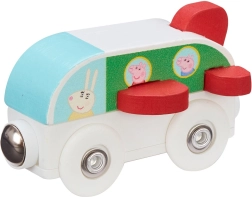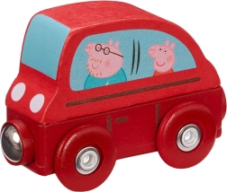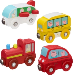 Holzflugzeug inspiriert von der beliebten Zeichentrickserie Peppa Wutz. Ideales Spielzeug für kleinere Kinder, das leicht in der Hand liegt. Das Flugzeug ist mit drehbaren Rädern ausgestattet, sodass Kinder damit auf dem Boden oder auf dem Tisch spielen können.