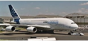 Das Modell erfasst die typischen Merkmale des zweistöckigen Airbus A380, einschließlich vier Triebwerken, Tragflächen mit Winglets und Fahrwerk.
