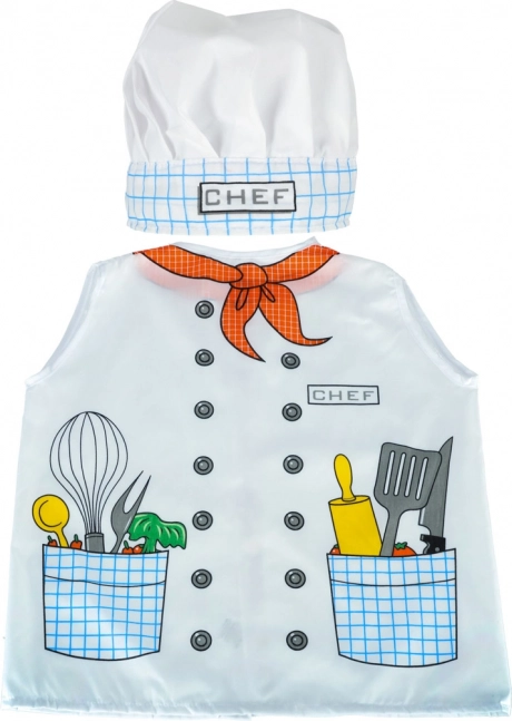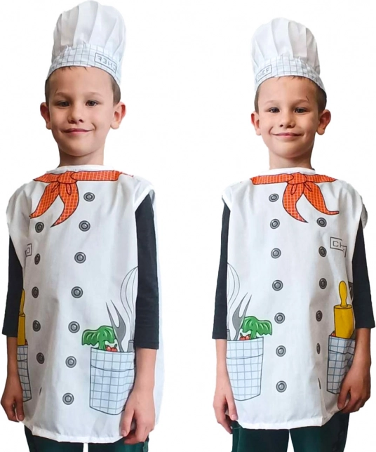 Das Kostüm umfasst ein weißes Schürzendesign und eine Kochmütze, damit sich Ihr Kind wie ein echter Koch fühlt.