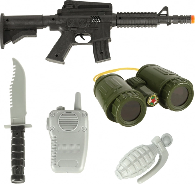 Das Set enthält Plastik-Accessoires wie eine Waffe, ein Messer, ein Funkgerät und mehr, für ein realistisches Spiel und die Entwicklung der Fantasie.
