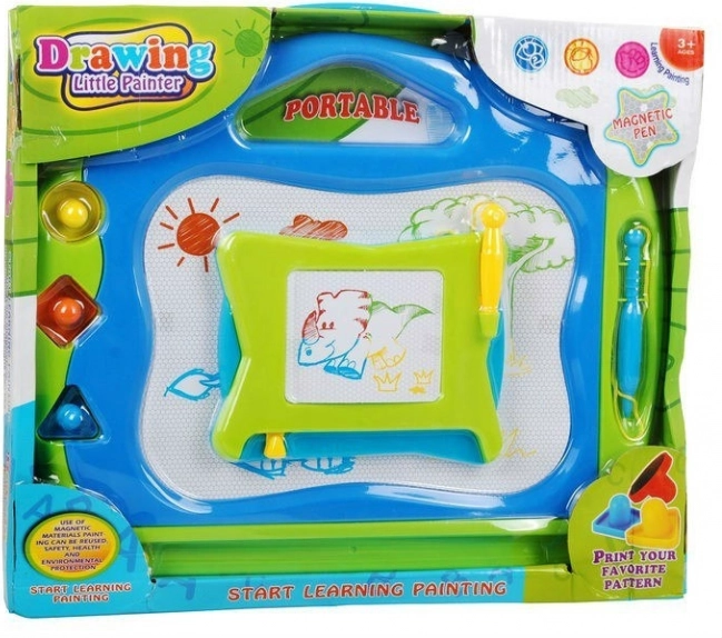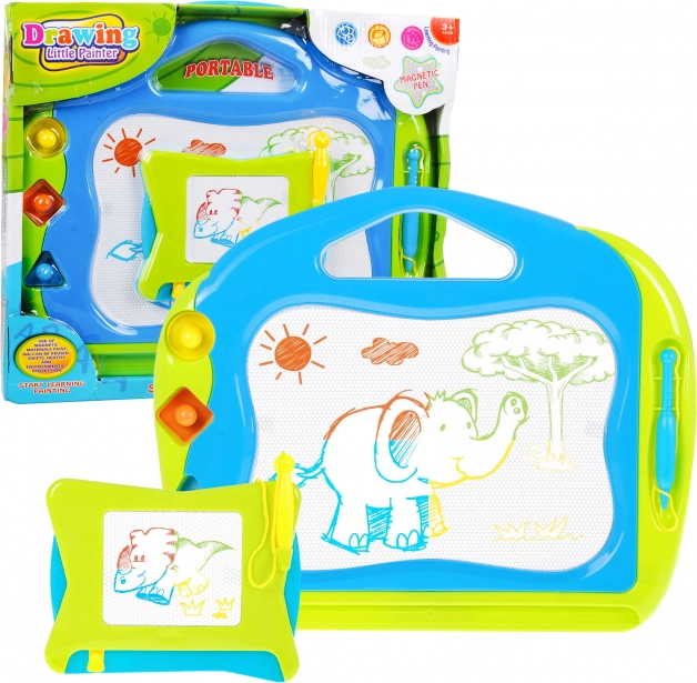 Dieses Set enthält eine große magnetische Tafel mit weißer Zeichenfläche und integriertem farbigem Hintergrund (Rot, Grün, Blau, Gelb) sowie eine kleinere Reisetafel gratis. Mit dem beiliegenden Stylus und drei Stempeln (Kreis, Quadrat, Dreieck) können Kinder farbenfrohe Bilder gestalten, Formen üben und ihre Kreativität entwickeln.