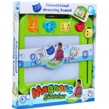Kinder freuen sich über 4 große Tierstempel (Kaninchen, Hündchen, Kätzchen, Entchen), die das Gestalten bereichern. Der Zeichenstift an der praktischen Kordel geht auch im Eifer des Spiels nicht verloren. Die Tafel ist so gestaltet, dass sie gleichzeitig Vorstellungskraft, Konzentration und Hand-Auge-Koordination fördert.