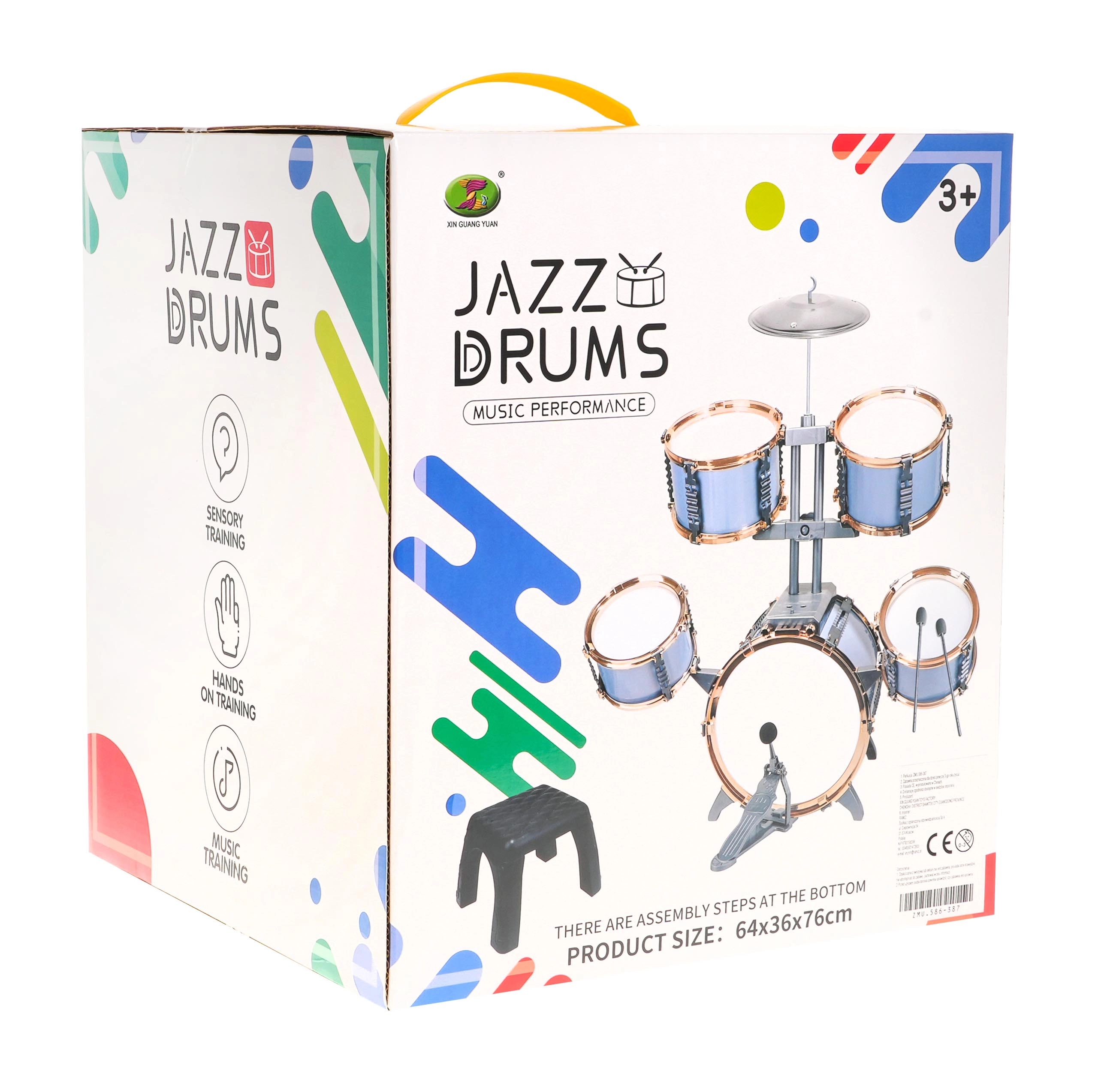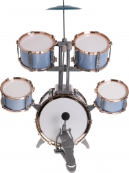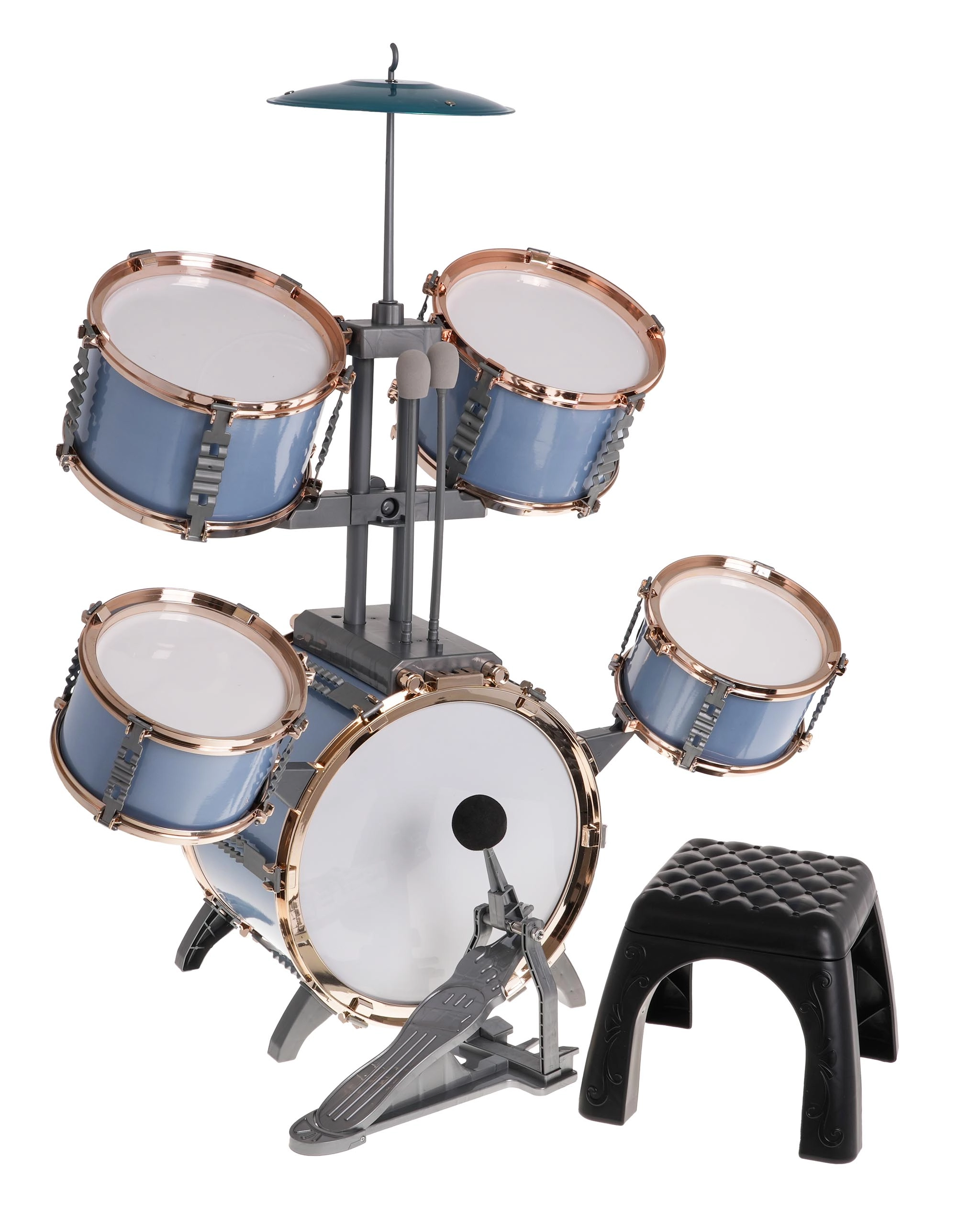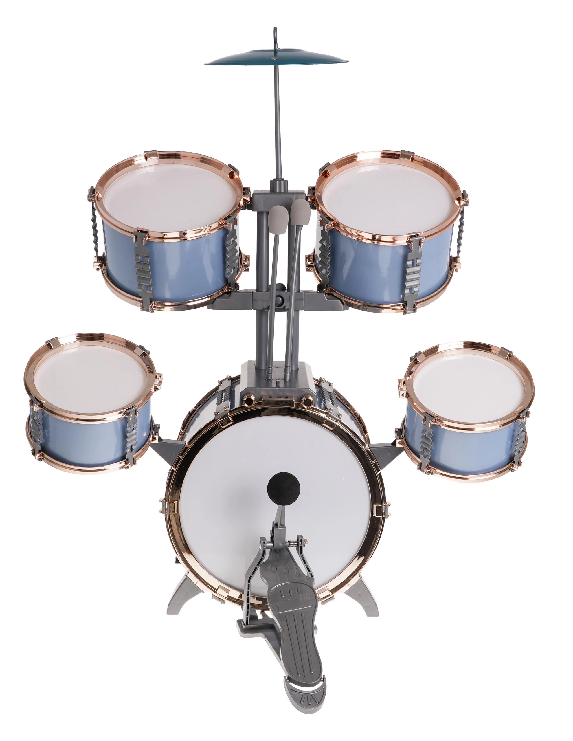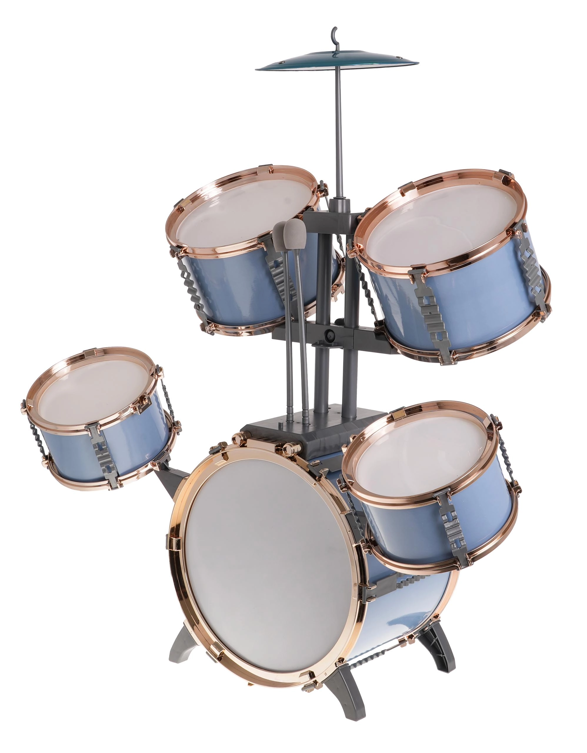 Dieses fünfteilige Kinder-Perkussionsset in Hellblau ist eine hervorragende Wahl für den ersten Kontakt mit Musik. Es bietet ein authentisches Schlagzeugerlebnis, einschließlich großer Bassdrum mit Pedal, zwei mittleren und zwei kleinen Trommeln sowie einem klar klingenden Metallbecken.