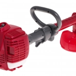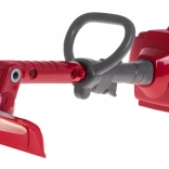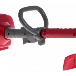 Ziehe das hintere Element am Griff nach oben, um ein Motorgeräusch zu hören. Drücke und halte den Knopf an der Unterseite des Teleskopstabs, um den typischen Rasentrimmer-Sound zu hören und die Klinge grün leuchten zu lassen.