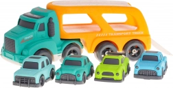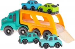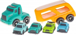 Der Anhänger lässt sich leicht abkoppeln und die Autos können eigenständig fahren. Perfekt zur Förderung von Fantasie und Rollenspiel.