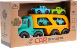 Interaktiver Abschleppwagen mit Plattform und 4 Autos aus Bioplastik für Kinder ab 18 Monaten – Gelb