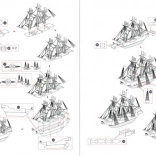 Entnehmen Sie die einzelnen Teile aus den Metallblechen; bei Bedarf verwenden Sie kleine Seitenschneider (nicht enthalten). Die Teile werden mittels Laschen und Löchern miteinander verbunden. Biegen Sie die Laschen mit kleinen, feinen Zangen (nicht enthalten) um und verbinden Sie nach und nach alle Verriegelungen, bis ein äußerst realistisches Meisterstück entsteht!