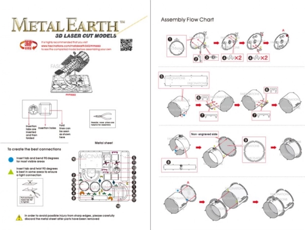 Das Modell wird ohne Klebstoff zusammengebaut – die Teile werden mit kleinen Laschen und umgebogenen Zungen verbunden. Empfohlenes Alter 14+. Das fertige Modell hat kompakte Abmessungen von ca. 7,5 × 6 × 5 cm und passt damit perfekt auf jeden Schreibtisch.