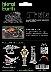 Entdecken Sie die Freude am Modellbau mit dem 3D‑Puzzle METAL EARTH Monster Truck. Lösen Sie die einzelnen Teile aus flachen Stahlblechen und verbinden Sie sie mittels Verriegelungen zu einer beeindruckenden Metallminiatur mit authentischen Details. Dank Lasergravur kommen die Flammen auf der Karosserie und die robusten Räder besonders zur Geltung – ein echter Blickfang für die Vitrine.
