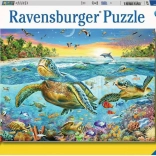 Entdecken Sie die Magie des Ozeans mit dem Ravensburger Puzzle „Schwimme mit Meeresschildkröten“. Das Bild voller lebendiger Farben und Details zieht Kinder in die faszinierende Welt unter der Wasseroberfläche und regt ihre Neugier sowie ihre Vorstellungskraft an. Hochwertige Puzzleteile passen perfekt zusammen und gewährleisten ein angenehmes Puzzelerlebnis ohne Frustration.
