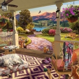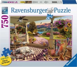 Entdecken Sie die Freude am Puzzeln mit dem Ravensburger Puzzle Gemütliche Veranda. Extra große Teile erleichtern das Zusammensetzen und sorgen für ein angenehmes Spielerlebnis.