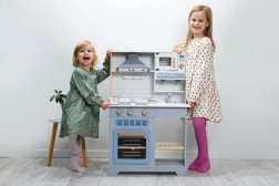 Diese interaktive Holzküche mit Dunstabzugshaube bietet Kindern ein authentisches Kocherlebnis in einer sicheren und langlebigen Ausführung. Realistische Elemente wie Herd, Backofen, Spüle und Mikrowelle fördern Fantasie und Rollenspiel, während Drehknöpfe und Tasten den sensorischen Spielspaß erhöhen.