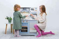 Herd, Backofen, Mikrowelle und Spüle schaffen ein authentisches Umfeld. Drehknöpfe und Tasten regen Kinder zum Entdecken und zu sensorischem Spiel an.