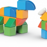 Bunte Teile lassen sich leicht verbinden und trennen und fördern Feinmotorik, Fantasie und räumliche Wahrnehmung der Kinder.