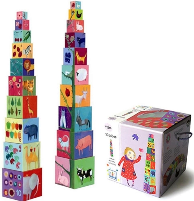 Dieser Würfelturm ist das ideale Spielzeug für kleine Kinder. Er fördert nicht nur Kreativität und motorische Fähigkeiten, sondern vermittelt auch Tiernamen, Farben und Zahlen. Die Würfel können zu einem Turm gestapelt oder ineinander gesteckt werden, was viele Spielvarianten bietet.