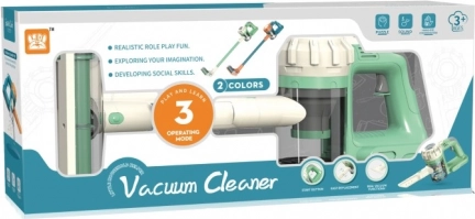 Treten Sie ein in die Welt der Reinigung mit diesem grünen Kindersauger. Das Spielzeug ist darauf ausgelegt, Ihre Kinder durch Spaß und Bildung zu erfreuen: