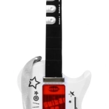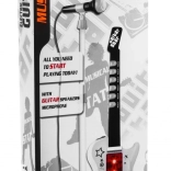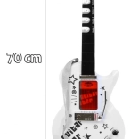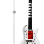 | | Einzigartige elektrische Gitarre für zukünftige Gitarristen zusammen mit einem Mikrofon im Set. Die Gitarre ist ein außergewöhnlich inspirierendes Saitenzupfinstrument, das eine äußerst wichtige Rolle im Blues, Country, Flamenco, Rock und in vielen Formen der Popmusik spielt. Schon in den ersten Lebensjahren zeigt ein Kind Interesse am Spielen mit Spielzeugen, tanzt, singt und versucht, auf einfachen Instrumenten zu spielen. Die Präsenz von Musik in der Entwicklung des Kindes hat eindeutig einen positiven Einfluss. Ein so früh entdecktes Talent hat die Chance, sich in Zukunft deutlich zu entfalten, daher sollte dieser Moment nicht verpasst werden. Wenn Ihr Kind Gitarristen mit unvorstellbarer Freude beobachtet, so tut, als würde es auf einer imaginären Gitarre spielen und ein Gefühl für Rhythmus hat – dann könnte es Talent für das Gitarrenspiel haben. Das Spielzeug ist mit 6 Metallseiten, 3 Gitarrensounds, 7 Melodien und 12 kurzen Soli ausgestattet. | Lieferumfang | - Gitarre mit verstellbarem Gurt (betrieben mit 3 AA-Batterien 3 x 1,5 V – nicht im Lieferumfang enthalten), - Mikrofon zur Stimmverstärkung, - verstellbares Stativ (2 Stufen), - Einstellung der Mikrofonhöhe, - MP3-Kabel, |