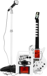 Die elektrische Gitarre mit Verstärker und Mikrofon bietet ein vollständiges Erlebnis für kleine Musiker.