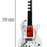 Entdecken Sie die unwiderstehliche elektrische Gitarre für zukünftige Gitarristen, die Teil eines Sets mit Mikrofon und Verstärker ist. Dieses Set ist ein außergewöhnliches Musikinstrument, das einen positiven Einfluss auf die Entwicklung des Kindes hat. Musik fördert die Kreativität und kann Talent in jungen Jahren entdecken. Diese Ausrüstung ist so konzipiert, dass sie leicht für Kinder zu verwenden ist und gleichzeitig großen Spaß bietet. Die Gitarre enthält 6 Metallseiten, 3 Töne, 7 Melodien und 12 kurze Soli.
