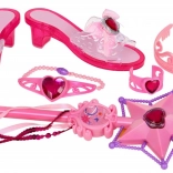 Beinhaltet Tiara, Armbänder, Ring, Ohrringe und einen magischen Zauberstab. Alle Teile sind mit roten Herzschmucksteinen verziert – ideal für fantasievolles Spiel.