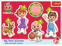 Dieses Kinderpuzzle COCOMELON – Mein erstes Puzzle wurde für die kleinsten Baumeister ab 2 Jahren entwickelt. Es warten vier separate Puzzles mit schrittweise steigender Teilezahl (2/3/4/5), die Feinmotorik, Geduld und logisches Denken fördern.